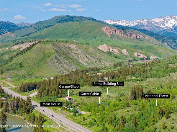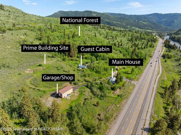 Experience the Best of Wyoming Living! Versatility Meets Opportunity 15 minutes from town yet your own private getaway that backs to National Forest. No CC&RS. No subdivision. Unique property offers a rare blend of lifestyle (close to fishing, kayaking, hunting), location, and limitless potential. Whether you're a business owner looking for a live/work setup, in need of housing for employees or simply dreaming of building your forever home in a breathtaking setting, this one-of-a-kind property is ready to meet your vision. Set on a spacious and functional lot, the property features four key components: comfortable main house (3 BD/2 BA), well-equipped garage/shop (30x48), guest cabin (1 BD/1 BA), and prime building site. A canvas for your WY dream!