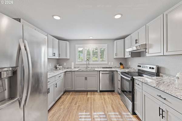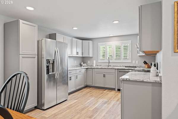 - Dishwasher, Free Standing Range, Free Standing Refrigerator, Granite
