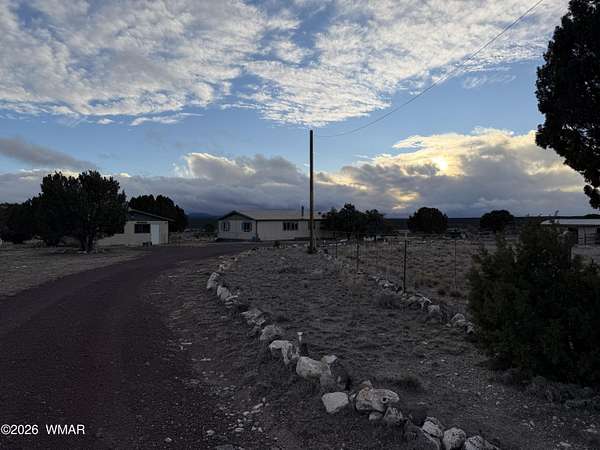 From Deuce of Clubs, head east toward Concho. Left on Hwy 61, then left on Stanford Rd (paved) 5 miles. Left on Grant Rd to the end, then quick right and left again on Pioneer Trail. House is on the left.