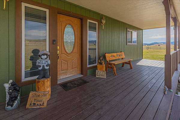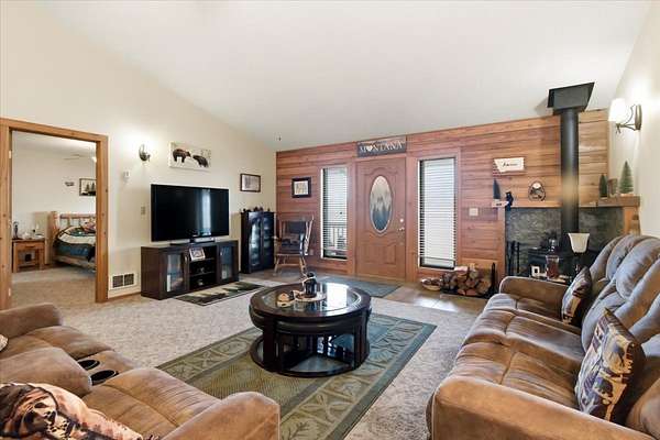 Surrounded by Montana's stunning landscapes, this beautifully maintained property offers a seamless blend of comfort and easy living. Set on fully-fenced, level acreage, you'll enjoy breathtaking mountain views from multiple outdoor living spaces, including covered decks and an expansive patio-ideal for quiet mornings, evening sunsets, or relaxed gatherings with friends and family. Designed with convenience in mind, the home features true single-level living with a thoughtfully-planned layout. Inside, you'll find three generously-sized bedrooms, one full bath, and one three-quarter bath, along with vaulted ceilings and an open-concept living area that create an inviting yet manageable space. Large windows bring in natural light and frame the surrounding landscape, while the oversized laundry and pantry areas add everyday practicality and extra storage. Outside, a covered breezeway provides sheltered access from the home to an oversized two-car garage complete with a dedicated workshop-perfect for hobbies, projects, or additional storage. The asphalt driveway ensures smooth access, while established sidewalks and landscaped flowerbeds enhance both beauty and ease of upkeep. Fabulously maintained and truly low-maintenance, this move-in ready property is well-suited for those seeking a peaceful, comfortable lifestyle with room to enjoy the outdoors. Additional features include a high quality ICF foundation, a freshly painted exterior, a gated entrance, a central wood stove for cozy winter heating, a mini split for additional heat and/or summer cooling, as well as an oversized pantry connected to the back utility room. This thoughtfully-designed, functional property is ready for you to call home!