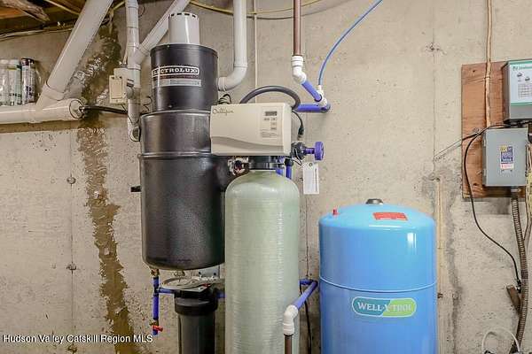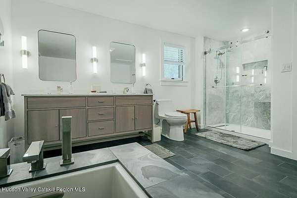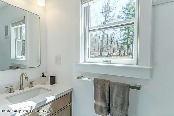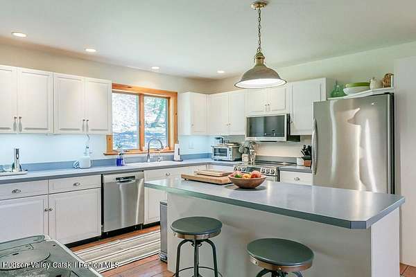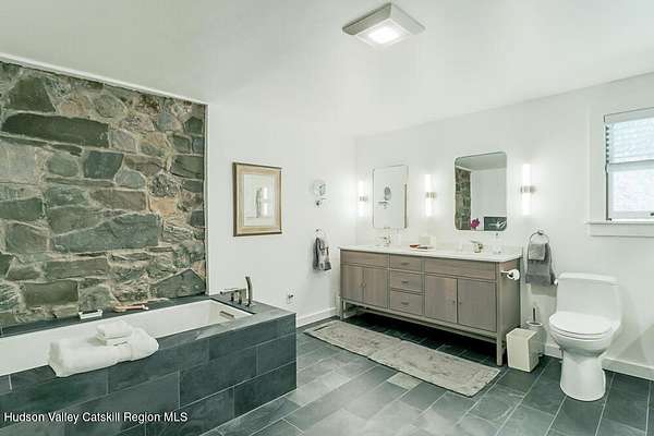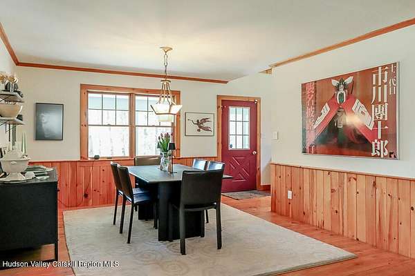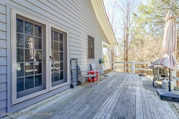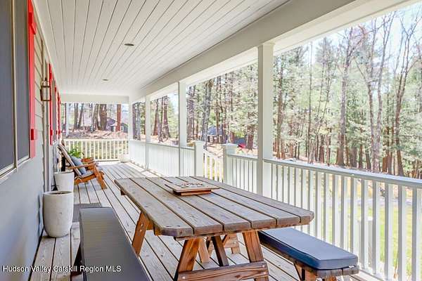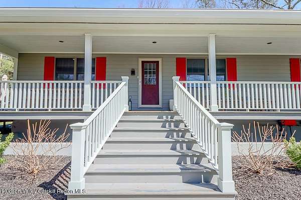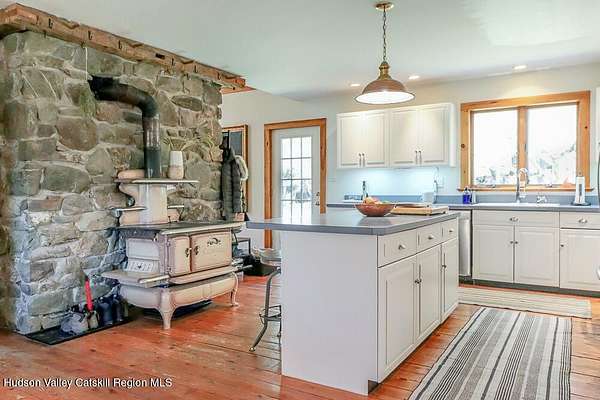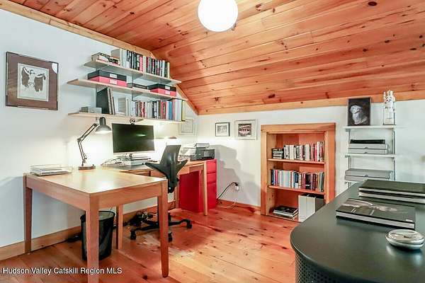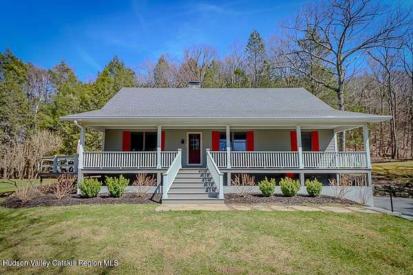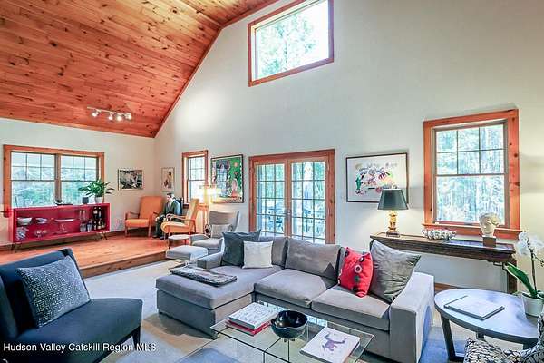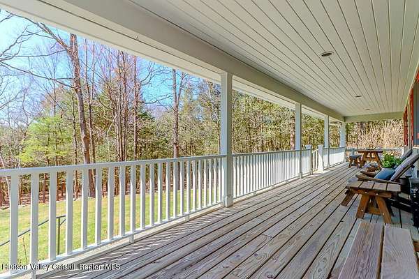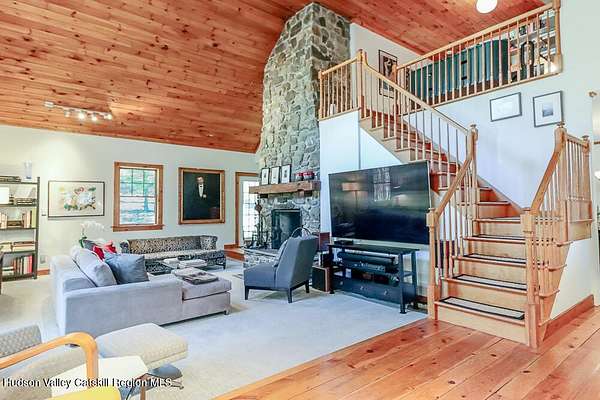 OPEN HOUSE SATURDAY 11AM to 1PM. Sophistication meets rustic charm in this custom-built country retreat, perched in the hills of Spencertown on coveted Dugway Road. Set on 8.2 picturesque acres, this estate offers a rare blend of distant views, sunny meadows, and a private stream with waterfalls. The home's soul is found in its organic details: wide-plank flooring milled from the property's own timber and a soaring floor-to-ceiling fireplace crafted from native boulders. The flowing open floor plan begins with an expansive wrap-around porch, leading into a vaulted two-story living area and a chef's kitchen featuring stainless appliances and a charming antique Glenwood cast iron stove. The main level hosts two guest bedrooms and a newly renovated full bath with laundry. Upstairs, a versatile landing/office space overlooks the great room, leading to a luxurious primary suite complete with a custom walk-in closet and a spa-like bath featuring a soaking tub and double vanity. Modern efficiency and utility are at the forefront. Recent updates include geothermal heating and cooling, a whole-house generator, a new roof, and an electric car charging station. For the hobbyist or collector, the attached two-car garage features a separate dedicated room, ideal for a professional workshop, art studio, or a temperature-controlled wine cellar. Located minutes from the Spencertown Academy, Chatham, Hawthorne Valley and the Berkshires, this turn-key sanctuary is ready for your summer enjoyment.