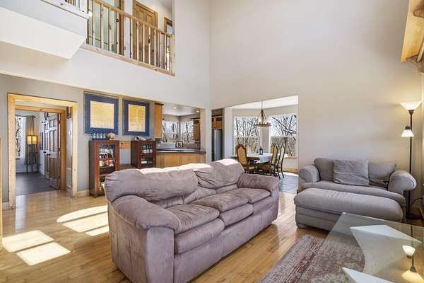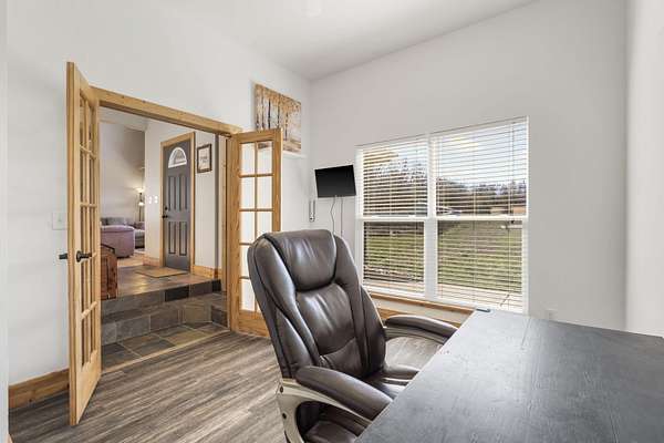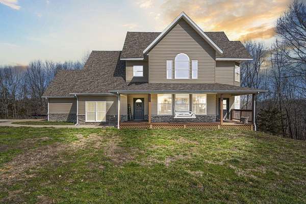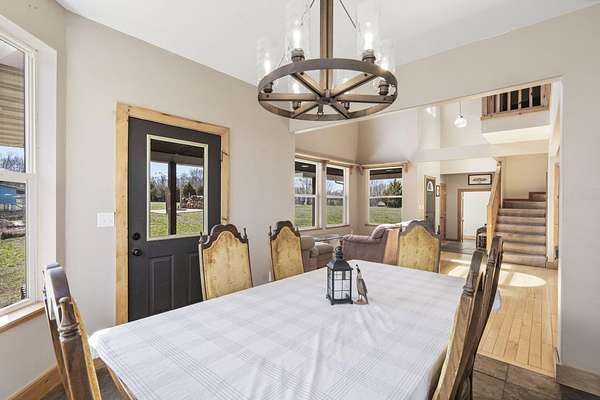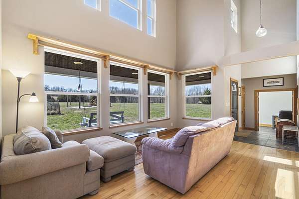Welcome to this breathtaking countryside estate where space, opportunity, and rural charm collide. Nestled on a stunning 5.17-acre tract of functional land, this custom built home spans nearly 4,000 square feet that is bathed in natural light, where you are welcomed by soaring ceilings in the centralized open-concept living, dining, and kitchen areas. The kitchen features an abundance of custom cabinetry, sleek concrete countertops, and a gas range. The spacious main-level primary suite offers incredible views of the surrounding landscape and is complete with a well-appointed ensuite featuring a walk-in shower, jetted tub, and walk in closet. Convenience abounds with a dedicated home office, mudroom, laundry room, and guest bath all on the main floor. On the second level, two generously sized bedrooms and a full bath are complemented by an elegant balcony overlooking the great room, offering panoramic views of the property. The third-story bonus room and bath provide increased functionality--whether utilized as additional living quarters, a media room, game room, or home classroom. A fully equipped walk-out basement, currently operating as a successful Airbnb, adds incredible versatility. This space includes two bedrooms, a full bath, kitchen, and its own laundry--ideal for rental income, a guest suite, or multigenerational living. The acreage here makes this property a dream for hobby farmers and homesteaders alike. A spacious garden, chicken coop, and room for additional features in the outbuilding provide endless possibilities. The majority of the land is open and currently used for hay production--ideal for livestock--while the wooded areas provide stunning foliage and privacy. You'll also find an inviting outdoor fire pit area, a poured concrete back patio, a large front porch complete with a charming swing. Tucked away at the end of a private drive, this home offers the best of both worlds--peaceful seclusion yet just minutes from local amenities!