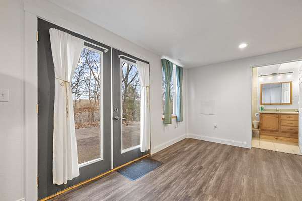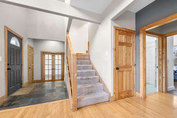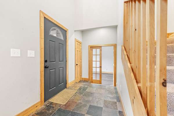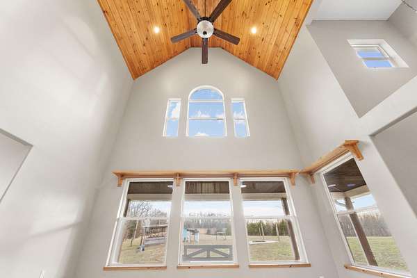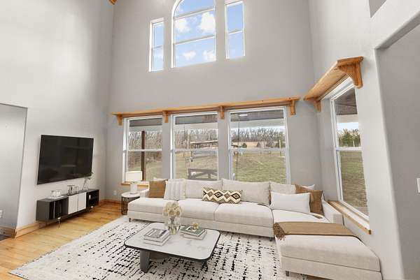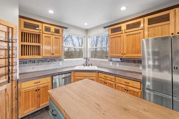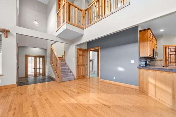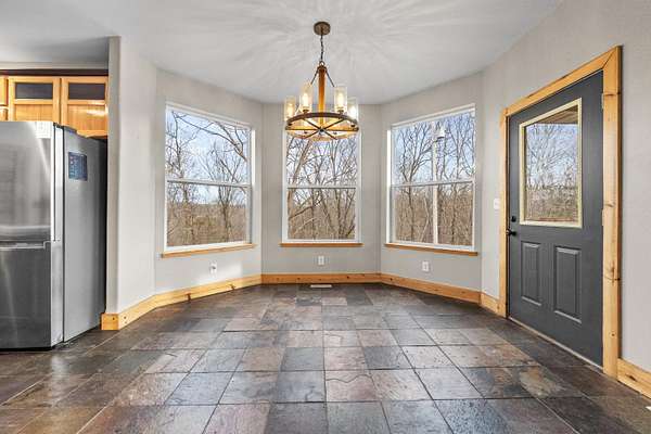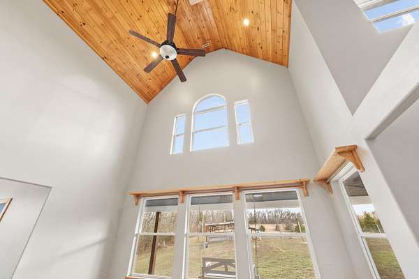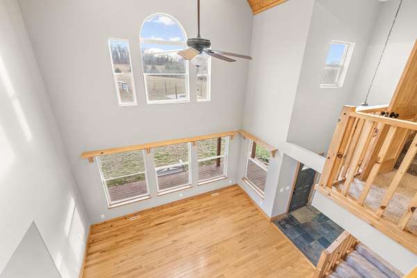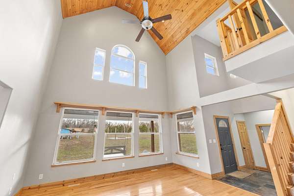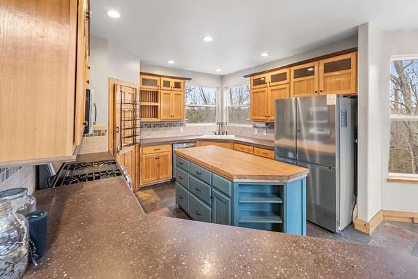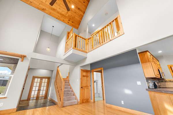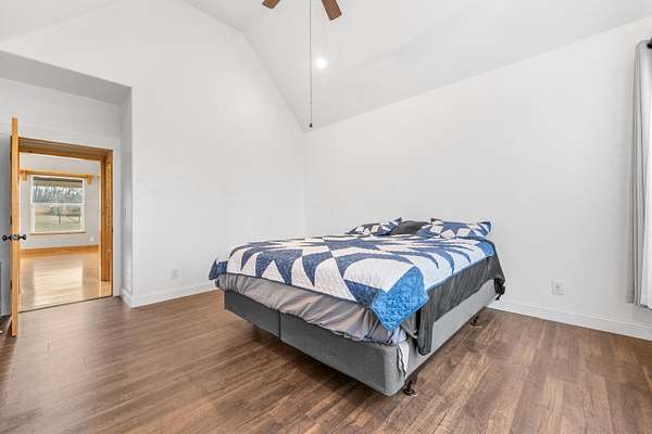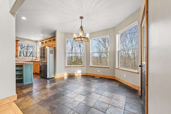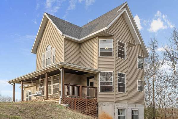 Custom built home situated on 10.17 usable acres offering space, privacy, and flexibility. Nearly 4,000 square feet of living space with an open concept living, dining, and kitchen area featuring soaring ceilings, custom cabinetry, concrete countertops, and a gas range. Main level primary suite includes scenic views, walk in shower, jetted tub, and walk in closet. Main floor also offers a home office, mudroom, laundry room, and guest bath. Upper level features two spacious bedrooms, a full bath, and a balcony overlooking the great room. Third level bonus room with bath provides additional flexible living space.Fully equipped walk out basement currently operating as a successful Airbnb with two bedrooms, full bath, kitchen, and separate laundry. Property includes garden area, chicken coop, open acreage currently used for hay production, and wooded areas for privacy. Outdoor features include a poured concrete patio, fire pit area, and large front porch with swing. Located at the end of a private drive, offering peaceful seclusion while remaining close to local amenities. Optional purchase available for the home on approximately 5 acres for $525,000.