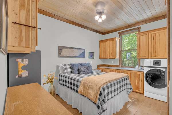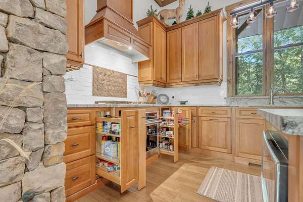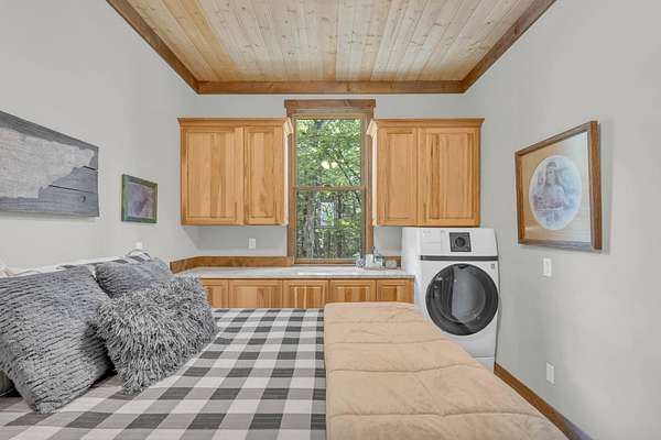 Upstairs, a second master suite continues the thoughtful design with another well-appointed bathroom and sweeping views of the lake. The lower level provides exceptional flexibility--perfect as a mother-in-law suite, guest quarters, or rental unit. Here you'll find another custom kitchen with large island, open great room with rich wood finishes, cozy fireplace, and a spacious bedroom with luxurious bath. A large utility area with separate laundry and pantry ensures function matches beauty.