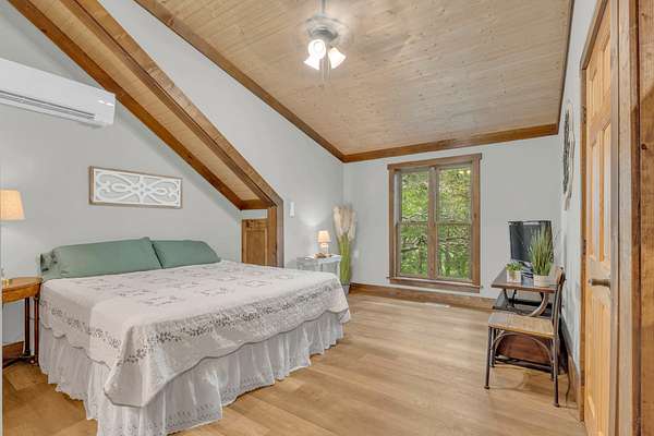The main level opens into a light-filled great room anchored by a custom chef's kitchen featuring gourmet appliances and high-end cabinetry, elegant granite countertops, and seamless flow for everyday living. The great room is complimented by a tailor made exceptional quality fireplace which creates the perfect ambiance for cold winter nights. Just beyond, the owner's suite feels like a treetop hideaway, with expansive windows, spa-inspired bath, and details that create a calming retreat. A covered outdoor deck expands the living space, offering an ideal setting for gatherings, holiday celebrations, or quiet evenings overlooking nature. An additional bedroom, full bath, and utility room complete this level with convenience.