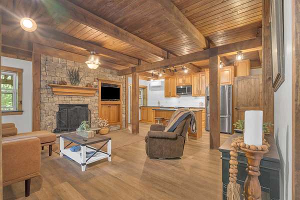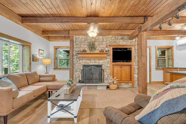 Outdoors, nature is your playground. Wander through your own boulder field, stroll down to the water's edge, or spend the day fishing, kayaking, or paddle boarding on the private 9-acre lake shared only with a few neighbors. The property's thoughtful integration of indoor luxury with outdoor adventure creates a one-of-a-kind lifestyle.