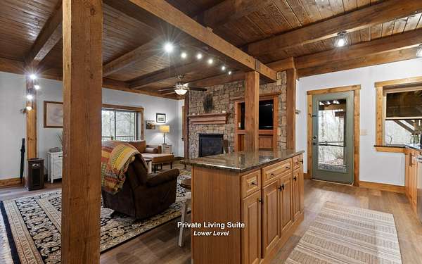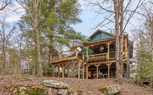 WATCH VIDEO: https://youtu.be/QLrhq7dw4HQ - LAKE HOME on 5+ ACRES atop Mowbray Mountain! 4 BED, 4.5 BATH home with private living suite combines indoor character with outdoor living! Inside, find hardwood floors, Andersen windows, and rustic charm! Open concept living area includes a kitchen with stainless steel appliances, handcrafted cherry cabinetry, granite countertops, and a large island. The main and lower level living areas are anchored by stacked stone natural gas fireplaces, with large window VIEWS of the 9+/- acre STOCKED PRIVATE LAKE, a tranquil backdrop for both summer fun and winter reflection. The main level also includes the primary ensuite, additional bedroom, bathroom, laundry, and access to the COVERED PORCH. Upstairs, find a private living area, perfect for a HOME OFFICE or bedroom. Downstairs, a PRIVATE SUITE that includes a living room with fireplace, full kitchen, laundry room, bath, back deck, and separate entrance - perfect for entertaining or multi-generational living. Features include on-demand water heater, spray-foam insulation, efficient mini-split heating and air units, low maintenance textured metal siding, and ample walk-out storage. Outdoors, functional circular driveway, covered front porch, and covered parking. Enjoy peaceful seclusion on 5.79+/- wooded acres - your private retreat for LAKE LIFE! Located in the EPB fiber optics service area, within HAMILTON COUNTY schools. 10 minutes to Soddy Daisy conveniences and 30 minutes to downtown Chattanooga! Welcome home to your lakeside serenity, where rustic charm meets open-air living.