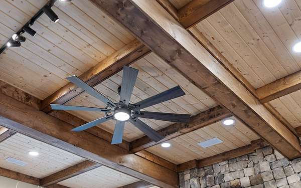 - Bookcases, Built-In Features, Ceiling Fan(s), High Ceilings, Open Floorplan