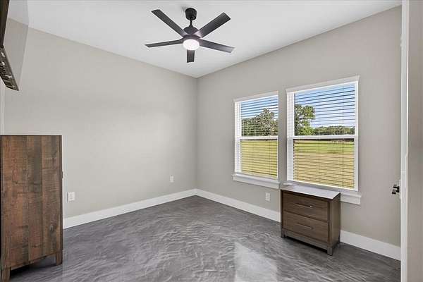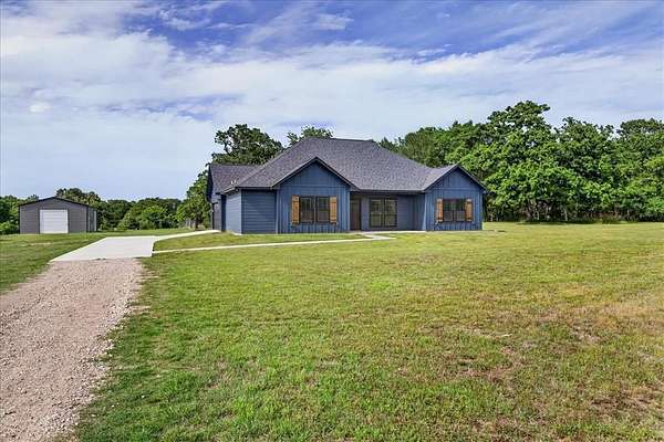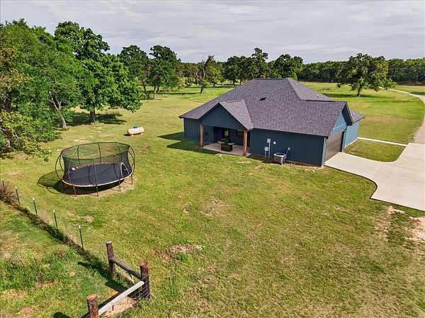 This 2025 custom-built home sits proudly on 12 acres of Texas beauty, where the long, private driveway ensures two things: 1. you’ll feel like you own your own little kingdom, and 2. unexpected guests will have plenty of time to reconsider. Tucked nearly halfway into the property, the home offers privacy without sacrificing practicality.