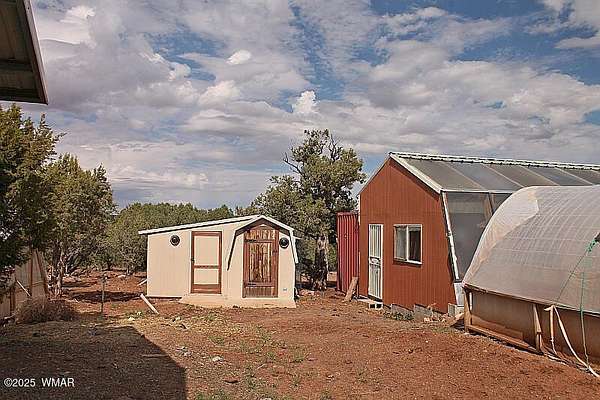 Off-Grid Homestead. 1526 Sq ft Workshop/Garage * 2021 2bed/2bath CAVCO 1166 sq ft * New in 2025 Solar Lithium Batteries * 41 Treed Acres Bordering State Land. * Private Well * Orchard with 30 Fruit Trees * Full Passive Geothermal Green House * 4 Retention ponds for orchard watering * 2 Fully enclosed Chicken Coops * 2 Whelping Sheds * Corral * Additional Parcel included 404-51-001B