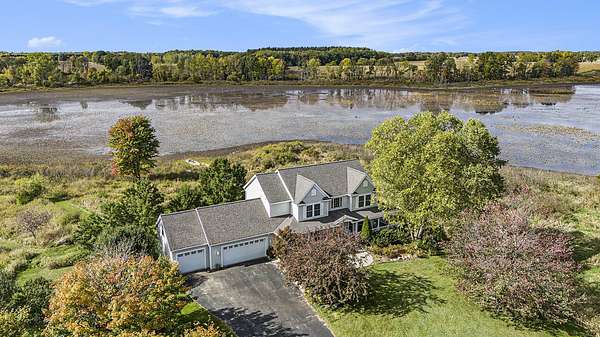 A home on the water with spectacular sunsets, an abundance of wildlife and a beautifully crafted builder's house, All on 9 acres. There is 360 ft. of frontage on Stoner Lake (a natural lake with waterfowl in abundance). The home features tall ceilings and solid natural wood trim and cabinets throughout. 4 bedrooms with a 5th roughed out in the walkout level and 31/2 baths A full ensuite primary bedroom on the second floor with two additional bedrooms up and and a 4th in the walkout. The kitchen with a large center island with generous cabinetry A large wraparound porch greets you with a sitting area overlooking the lake. The three stall garage with another 36 X 24 clear span garage down under for projects or treasures is super convenient. The main floor garage contains a generator hookup. The house sits at the end of a winding drive next to the lake and affords quiet privacy