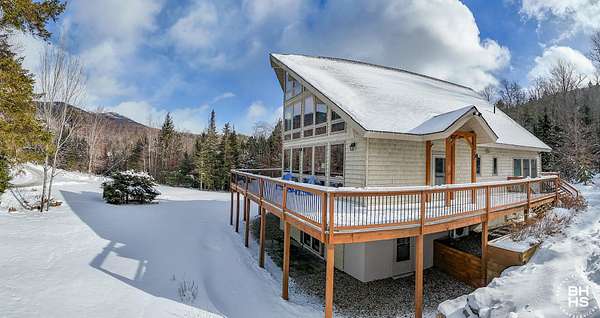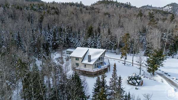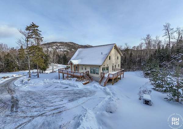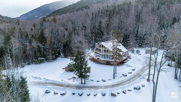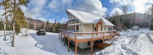 A rare opportunity to own in the foothills of the Adirondacks, is an 82 acre preserve with stunning mountain views and roaring brooks throughout the property. Whether you enjoy the panoramic views of hurricane mountain and the firetower, the stunning sentinel range, or you would like to relax near a waterfall for tranquil enjoyment, this property is for you. The 82 acres sits at the base of Giant mountain wilderness and offers an abundance of privacy and serenity. A carefully designed and crafted ADK chalet with a grand front wall of windows that brings the mountains, wildlife and abundance of natural light right into the grand living area. House has a beautiful open floor plan with a large gourmet kitchen, expansive amount of countertops and work space for any chef. Extremely large living and dining area with floor to ceiling windows, fireplace and cathedral ceilings. Upper level is a very generous primary suite with dual bathrooms and views of the hurricane wilderness area. Main level has an additional bedroom, large foyer and bonus room for any hobby. Lower level is comfortable, cozy and spacious. 3 additional bedrooms with lower level patio access and a large custom bathroom complete this home. Utility room has on demand water systems, a hard-wired generator and a water filtration system. When outside there are options to enjoy a lower level patio, expansive wrap around decks, or the cleared yard areas. An additional 1 car garage and a gardening shed complete the property. Future possibility of 4 buildable lot subdivided parcels.