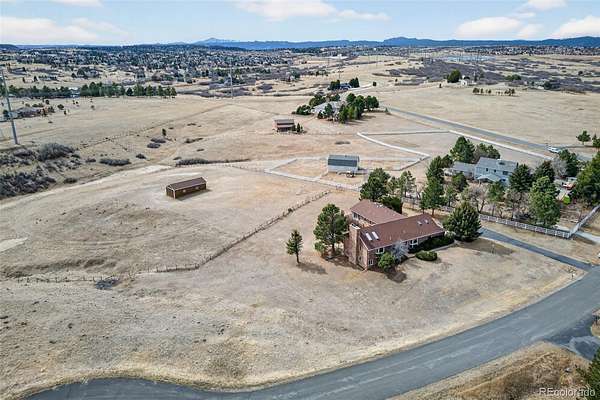Set within the rolling landscape of Surrey Ridge Estates, this private five-acre property captures the essence of Colorado’s open-space lifestyle while remaining remarkably connected to the city. Expansive meadow and mountain views, highlighted by the distant silhouette of Pikes Peak, create a sense of place that feels both grounded in nature and elevated in experience. Here, privacy and accessibility exist in quiet harmony, with Lone Tree, Castle Rock, and the Denver Tech Center just minutes away. The custom ranch residence unfolds across approximately 4,800 finished square feet, thoughtfully positioned to take full advantage of its natural surroundings. Light-filled living spaces open outward to a wrap-around Trex deck, creating a seamless connection between interior comfort and the expansive landscape beyond. The home’s generous proportions and open flow provide an inviting environment for both intimate gatherings and larger-scale entertaining. Equestrian functionality is integrated into the property through a two-stall barn equipped with water and electricity, offering a foundation for a horse-centered lifestyle or the flexibility for hobby use. The acreage itself invites vision, whether expressed through curated outdoor living areas, refined landscape design, or simply preserved as an expanse of natural beauty. Constructed with enduring craftsmanship and maintained with care, the residence presents a compelling opportunity to reimagine interior spaces while benefiting from an increasingly uncommon land offering in this established acreage community. Properties of this scale and proximity are seldom available, positioning the estate as both a meaningful lifestyle choice and a lasting legacy investment. This is a place where the rhythm of wide-open Colorado living meets the convenience of metropolitan access, a setting defined as much by its land as by the life it makes possible.
