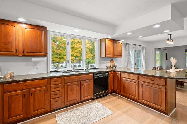 Looking for a beautiful home nestled on a wooded country setting? This 4 bedroom, 4 bath home with a pole barn has warmth and charm the moment you enter the front door. The main floor family room with walls of windows is ideal for daily gathering. The kitchen has granite counter tops, backsplash, stainless appliances and new flooring throughout. The dining space is adjacent to the kitchen and overlooks the porch and back yard. The three seasons room is the perfect place to relax. You will love the composite deck for entertaining. There is also a large room on the main floor ideal for a hobby room, office or an additional sitting room. The upper level has a primary bedroom with vaulted ceilings and an ensuite which has a walk in shower plus two additional bedrooms. Pole barn has a new office space with sink and stove. Downstairs bedroom has new paint and carpet. This home has all the extras: Generac system, large yard, porches, walk out basement and RV hook up.