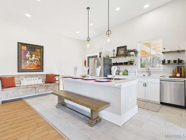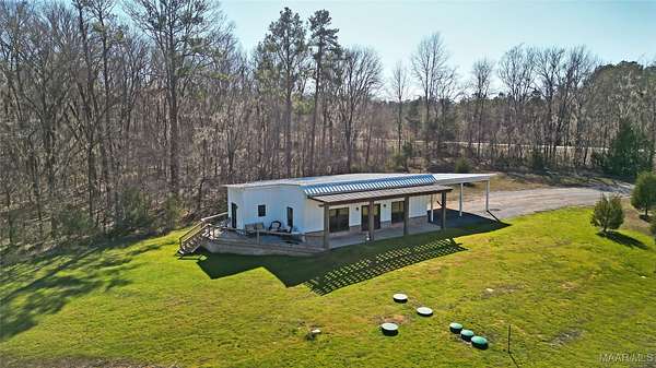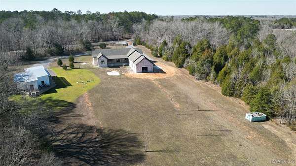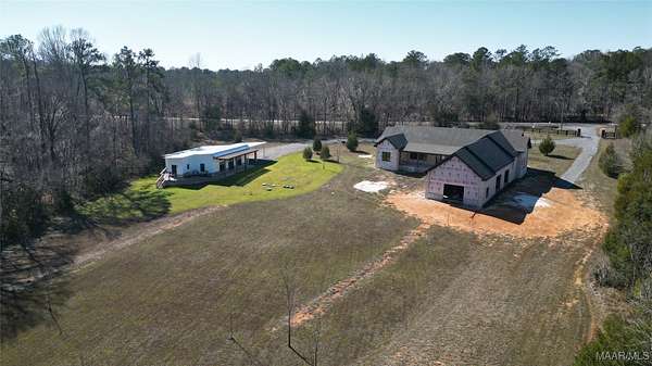 Imagine waking up to quiet mornings, wide open skies, and the gentle site of deer moving through the trees. This peaceful 10-acre retreat in Mathew's, Alabama offers the space, and privacy to create a home where memories are made and traditions begin. This remarkable property features a partially completed main home and a fully finished guest home in 2024, all surrounded by nature teeming with wildlife.The main residence offers over 3,800 square feet and is approximately 60% complete, providing a rare opportunity to select final finishes and put your personal signature on your dream home. The thoughtfully designed floor plan includes four bedrooms, four full baths, and 12 foot ceilings throughout. The open concept kitchen flows seamlessly into the living area, where expansive windows overlook the massive covered patio, creating the perfect space for family gatherings and everyday living. The primary suite serves as a private retreat featuring a spacious primary bath that connects the bedroom and laundry room for added convenience. Additional bedrooms and bathrooms offer plenty of space for family and guests. The oversized two-car garage boasts 14-foot ceilings and extra width, allowing both car doors to open fully with ease and offering room for storage. Connected to the garage is a large workshop with its own private bay door, for projects, hobbies, or additional storage. The 1500 square foot guest home, completed in 2024, features an open floor plan with one bedroom, a spacious walk-in closet, and a beautiful bathroom with a walk-in shower and double vanities-perfect for extended family or visitors. Enjoy peaceful evenings on the deck watching wildlife roam, unwind in the private outdoor shower and take advantage of the pole barn with electricity and water, gated front entrance, and utilities available in multiple locations throughout the property. More than a home, this is a place where families grow, memories are made and traditions can grow for generations.