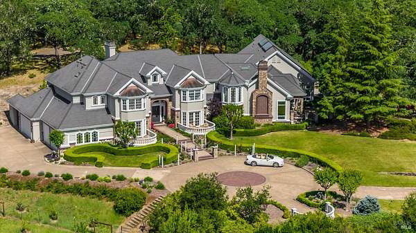 Escape to your own private retreat on 3 picturesque acres, bordering a 200-acre park in the exclusive gated community of Oak Hill. Set on a premier lot, this remarkable 7,200 sq. ft. estate welcomes you with a gated driveway and a formal entry that opens to a dramatic wall of windows framing a cascading garden waterfall. A stunning 3,000 sq. ft. indoor pool pavilion adds to the resort-like feel. Designed for both luxurious living and effortless entertaining, the thoughtfully designed floor plan features a spacious gourmet kitchen, a sunlit great room, a cozy breakfast nook, a large private office, and multiple inviting spaces to gather or unwind. Natural light floods every room, showcasing expansive views of lush gardens, patios, terraces, and majestic oak treescreating a seamless indoor-outdoor living experience. Wake up each morning in the tranquility of the primary suite, complete with a spa-inspired bath, generous walk-in closet, fireplace, and a peaceful sitting area overlooking Mount Weske Lake and Foothill Park. Just minutes from the heart of Windsor and the charm of Healdsburg Plaza, this one-of-a-kind property blends privacy, beauty, and convenience.