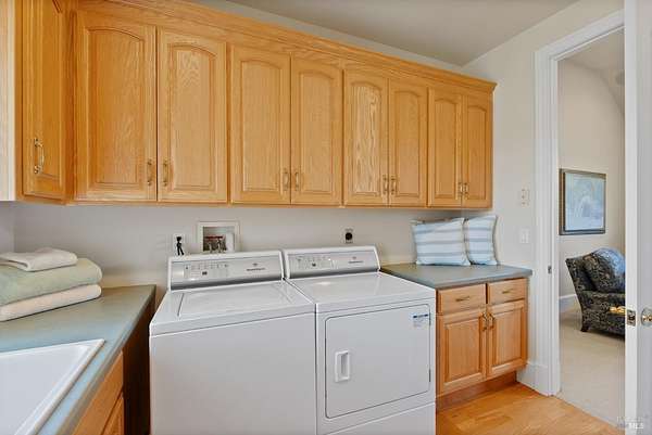 - Built-In Refrigerator, Cooktop, Dishwasher, Double Oven, Garbage Disposer, Gas Cooktop, Ice Maker, Microwave, Refrigerator, Washer, Wine Storage Refrigerator