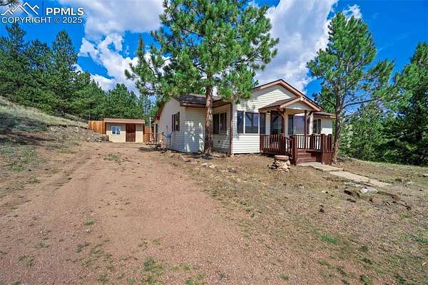 Set on 20 desirable acres in the Pike Trails community near Guffey, this updated 2 bedroom, 1 bath, single story home delivers the land, setting, and convenience buyers want. Built in 2001 with 1,176 sq ft, it now features a brand new roof, fresh interior and exterior paint, new blinds, and updated fixtures, so you can settle in and start enjoying the property from day one. The acreage is the star, combining open meadows and stands of pine with long views, privacy, and sunshine. Gentle terrain makes the land easy to use, with room for horses, gardens, and future ideas, plus ample space to stage trailers, equipment, and toys. Watch wildlife move through the grass, listen to the wind in the trees, and soak up big night skies that remind you why people choose this lifestyle. A 480 square foot detached workshop, a detached one car garage, and two small storage sheds support projects and storage without crowding your living space. From this quiet basecamp, year round fun is close at hand. Explore miles of trails and hunt in nearby Pike National Forest, fish or boat at Eleven Mile Reservoir, hike and watch wildlife at Mueller State Park, ride scenic byways, and when winter calls, head for a day of skiing in Breckenridge. For everyday needs, the friendly town of Guffey provides small town essentials, while Canon City and Woodland Park offer dining, services, and shopping. Here, the home is comfortable and practical, yet the land is what elevates the experience, offering freedom, fresh air, and the kind of elbow room that is hard to find. Whether you envision a peaceful retreat, a base for adventure, or a place to build equity over time, this property is a rare chance to own usable, beautiful acres in a sought after Colorado location. South facing exposure brings warmth, and the mix of pasture and timber gives you sites for a barn, greenhouse or outdoor living. From spring wildflowers to glowing fall grasses and peaceful winter mornings, every season brings its own beauty!