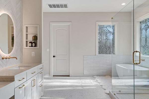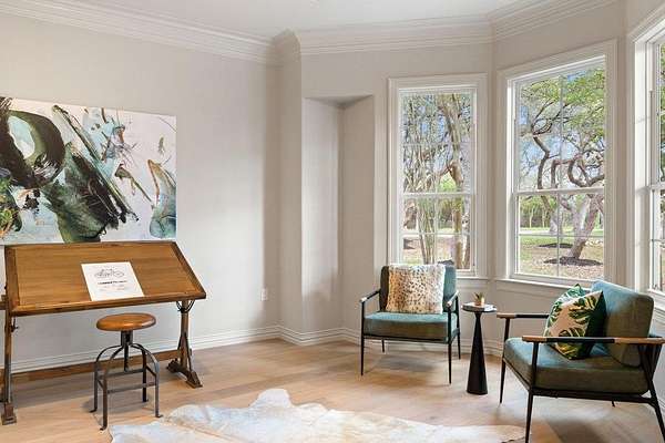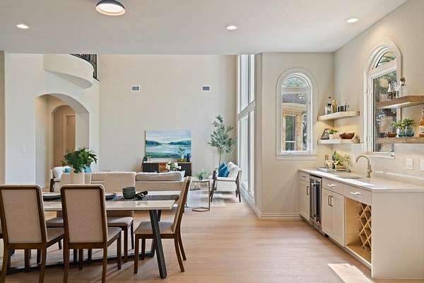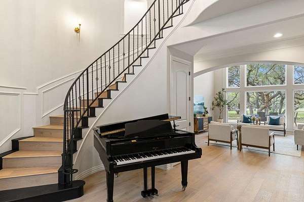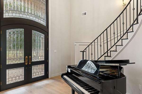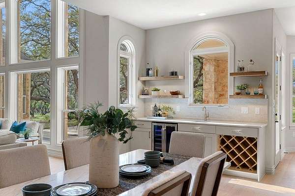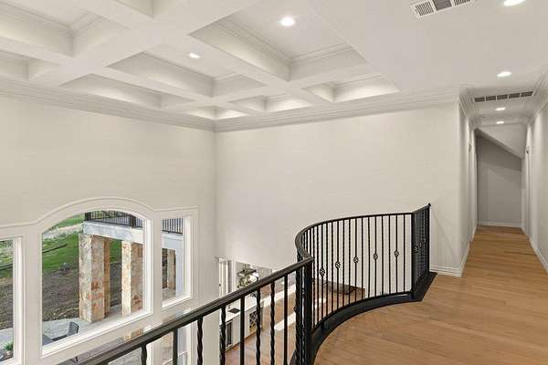 - Bar, Breakfast Bar, Built-In Features, Cedar Closet(s), Ceiling Fan(s), Ceiling-High, Chandelier, Coffered Ceiling(s), Crown Molding, Double Vanity, Entrance Foyer, Interior Steps, Kitchen Island, Multiple Dining Areas, Multiple Living Areas, Open Floorplan, Pantry, Primary Bedroom On Main, Quartz Counters, Recessed Lighting, Study/Home Office, Tray Ceiling(s), Two Primary Closets, Walk-In Closet(s), Wet Bar