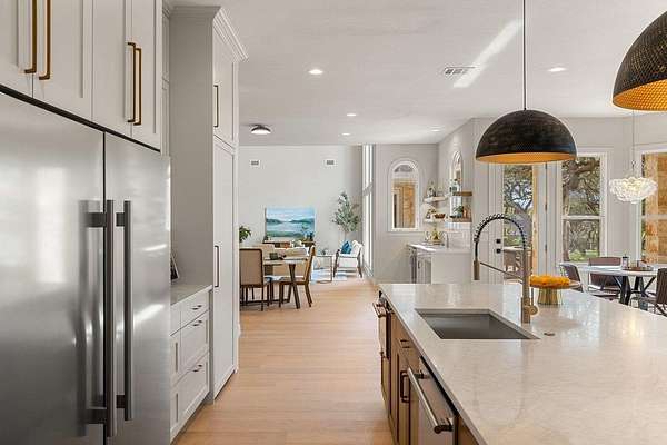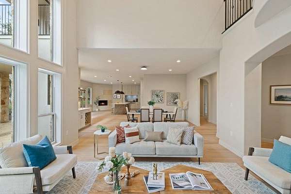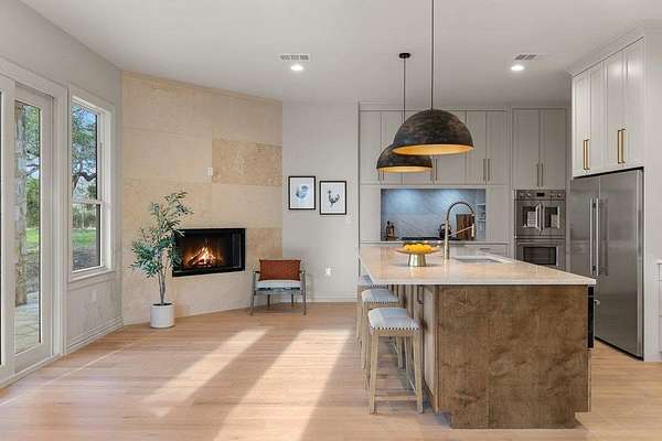 5 private acres in Driftwood with space to build, host, and grow, just minutes from Austin. An opportunity to establish a legacy Hill Country compound designed for multigenerational living & a lifestyle rooted in space, privacy, & connection. Bring your horses, chickens, or the whole family and experience a true slice of Texas Hill Country. Thoughtfully remodeled with a focus on quality and design, the home features soaring ceilings, wide-plank white oak floors, & a curated mix of materials that feel both elevated and enduring. From coffered & tray ceilings to statement lighting & custom millwork, every space has been intentionally designed to balance comfort with architectural presence. The kitchen & living areas flow seamlessly for everyday living & entertaining. Taj Mahal quartzite surfaces, a hidden wraparound pantry, & a well-appointed wet bar are enhanced by expansive windows that frame the landscape. The main-level primary suite is complete with a fireplace, serene views, & a fully renovated bath featuring a soaking tub, a walk-in rain shower, & dual custom walk-in closets. A connected flex space/bedroom offers the perfect opportunity for a nursery, private office, or wellness room. The layout features an extra main-level bedroom positioned privately near the garage with its own ensuite, ideal for guests or multigenerational living. The dedicated office has beautiful views & added storage. Upstairs, 2 bedrooms are complemented by a spacious game room that opens to a covered balcony. Outdoors, the property continues to impress. A workshop, RV-ready slab w/ power, & large barn-style structure create endless opportunities for hobbies, storage, or gatherings. The land itself is both usable & beautiful, with irrigated grounds, a well house, mature trees, & an orchard that enhances the true Hill Country retreat. Private and expansive, this property was built for the way people want to live today, with the flexibility & setting to make it your own for years to come.