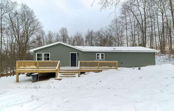 Move-in ready, turn-key, worry-free living and BRAND NEW EVERYTHING, all set in a peaceful, secluded location just minutes from town. This completely professionally remodeled ranch home offers the peace of mind buyers are looking for, with modern finishes and all major systems already done. The full concrete basement provides a massive open space with a large fireplace insert, ideal for future living space, a game room, home gym, or generous storage. Everything is new in 2025, including the roof, water heater, forced hot-air heating system, windows, doors, siding, two decks, luxury waterproof vinyl flooring, 200-amp electrical service, kitchen, and two full bathrooms--one featuring a custom tile shower. The current owners are contractors and are open to discussing appliances and additional upgrades or custom work to further personalize the home for the right price. See Link for a virtual tour: https://www.youtube.com/watch?v=3UuErkkgJck