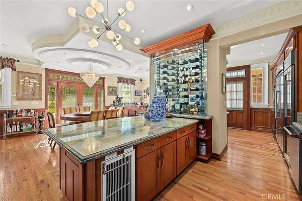 Nestled in the sought-after estate area of San Marino, this Colonial Georgian residence offers a rare combination of timeless elegance, modern luxury, and historical significance. Originally built in 1918 for Henry E. Huntington, founder of the Huntington Library and Huntington Hospital, this estate spans an impressive 10,458 sq. ft. and has been meticulously maintained while preserving its architectural charm. A wrought-iron gate opens to a stone-paved driveway, flanked by impeccably landscaped gardens. The home's grand entrance features 12-foot ceilings, exquisite chandeliers, and rich wood detailing, exuding sophistication and grace. An elevator and grand staircases connect all levels for seamless access. The primary suite is a private retreat with a jacuzzi, walk-in shower, spacious closet, and sitting area. Six additional ensuite bedrooms provide privacy and luxury. The estate also includes a formal dining room, stately library, conference room, and a fully equipped cinema. Additional features include a gym, massage and barber room, multiple wet bars, and a wine cellar. Outdoor amenities are equally impressive, with balconies and terraces perfect for dining and entertaining. The resort-style pool with a waterfall and lighting, tennis court, cabanas, koi pond, and a Japanese-inspired tea house create an oasis of relaxation. The beautifully landscaped grounds also include a gazebo, garden pathways, and private retreat areas. The property is enhanced by a six-car garage, maid's quarters with two ensuite bedrooms, and a spacious two-story guest house. Fireplaces throughout the home and zoned central air-conditioning provide year-round comfort. Located in the award-winning San Marino School District, this historic estate offers a rare opportunity to own a home that combines timeless design with modern amenities in a premier location.