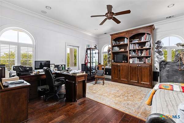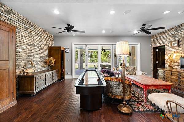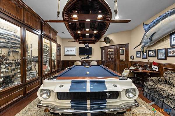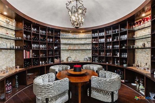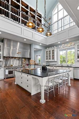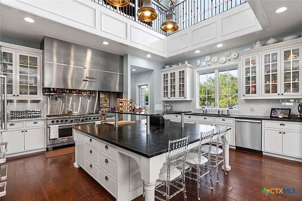 Luxurious Hill Country Estate on 142 Unrestricted Acres 10,708 Sq Ft Home | 7,500 Sq Ft Shop | Pool, Ranch, and More Nestled in the heart of the Texas Hill Country, this exceptional 142-acre estate offers unmatched privacy, space, and versatility. With a grand 10,708 square foot custom home as its centerpiece, this property blends refined living with true Texas ranch functionality. The main residence boasts expansive living and entertaining spaces, richly appointed with timeless finishes and warm, rustic charm. From vaulted ceilings and custom woodwork to multiple fireplaces and large windows capturing sweeping views, every detail speaks of craftsmanship and comfort, built around hand picked exquisite antiques. Outdoors, enjoy a resort-style pool with dual water slides-perfect for gatherings or private relaxation. Adjacent to the pool is a fully equipped pool house featuring a full kitchen, bath, and lounge area-ideal for guests or entertaining. Additional amenities include: Circle Brick paved Driveway. 7,500 Sq Ft Workshop with high ceilings and wide bays-ideal for equipment, hobbies, or business use with an air conditioned space. Separate Guest Quarters offering comfortable, private accommodations with 2 full bathrooms, a full kitchen, and laundry facilities. Fenced & Gated perimeter for privacy and livestock use Spacious Garden area for homegrown produce or landscaping projects with attached chicken coop. Unrestricted Land-perfect for a working ranch, hunting, horses, or future development This property offers the best of both worlds: refined, spacious living paired with the rugged beauty and flexibility of Hill Country land. Whether you're seeking a private retreat, a working ranch, or an entertainer's dream, this estate delivers it all.