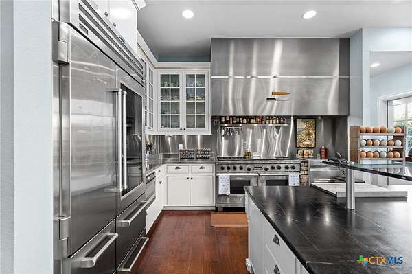 - Built In Oven, Cooktop, Dishwasher, Disposal, Double Oven, Gas Cooktop, Gas Range, Indoor Grill, Microwave, Plumbed For Ice Maker, Range Hood, Some Commercial Grade, Some Gas Appliances