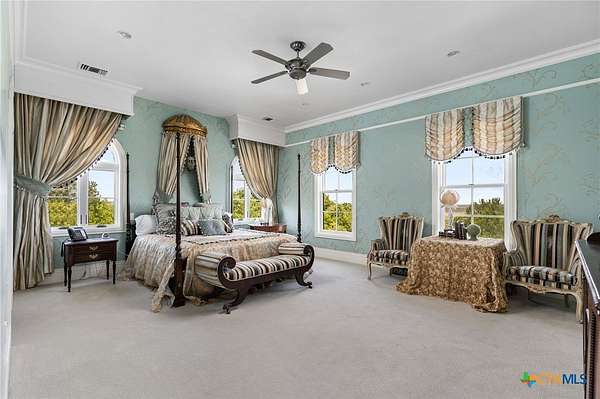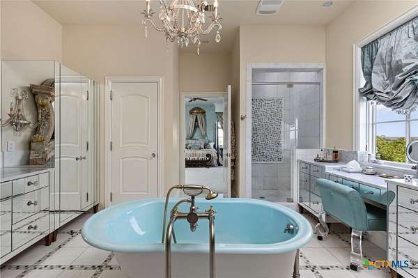 - Attic, Breakfast Bar, Built In Features, Cathedral Ceilings, Cedar Closets, Ceiling Fans, Chandelier, Crown Molding, Dining Area, Game Room, Garden Tub Roman Tub, High Ceilings, Home Office, Multiple Living Areas, Partially Furnished, Separate Formal Dining Room, Separate Shower, Soaking Tub, Split Bedrooms, Vanity, Wet Bar