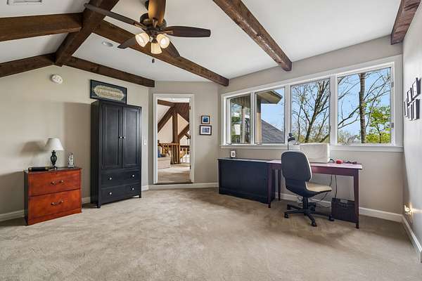 The lower level includes a second kitchen, creating an ideal opportunity for guest quarters or an in-law suite. A third-floor loft room offers flexible space for an additional bedroom, office, or hobby room. An elevator servicing all floors and laundry rooms on both the main and lower levels add everyday convenience.