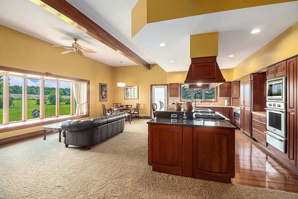 -- Welcome to 9991 Kaiser Road, a rare estate offering exceptional space, privacy, and versatility. This 5-bedroom, 4.5-bath home offers nearly 6,000 square feet in addition an unfinished walkout basement ready for your vision. A separate 1,700 sq ft guest house features a living room, gourmet kitchen, two bedrooms, two full baths, and an office--ideal for extended living or guests. An additional 1,100 sq ft of bonus space adds flexibility and features Kitchenette and full bath. The impressive 100x60 heated auxiliary building includes, 3, 14' commercial bay doors, storage room, basketball court and full bath. The property also offers multiple outbuildings, traditional silos, heated RV storage, and a heated dog kennel. Set on 10 acres (Pending approval) with additional upon request.