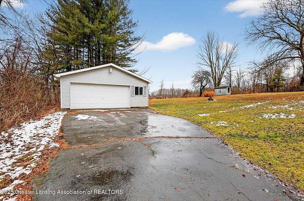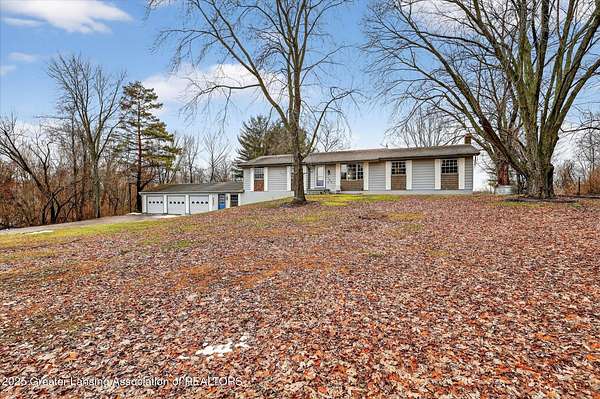 First time offered for sale since it was built, this 3 bedroom/2 bath ranch is set on 6 acres in Laingsburg and offers a functional layout for everyday life. Inside, the home features a formal living room along with a cozy family room, offering distinct spaces for gathering or relaxing. The eat-in kitchen is open and airy, with direct access to the back deck. A full basement adds valuable flexibility for storage, hobbies, or future use. A 3-car attached garage connects through a breezeway, providing a practical transition space for coats, boots, and daily comings and goings The land is a standout feature, offering a peaceful rural setting with frequent wildlife sightings and peek-a-boo views of Scenic Lake across the road. The acreage provides room to roam, garden, or simply enjoy the privacy and open space that's increasingly hard to find. Rounding out the property is a 24' x 30' pole barn with electric and a concrete floor, ideal for equipment, hobbies, or additional storage. Whether you're looking for a place to make your own or a long-held property in a desirable rural location, this offering presents a rare opportunity with land, outbuildings, and setting to match.