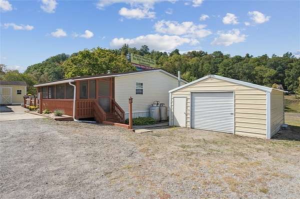 Situated on nearly 2 acres with no zoning restrictions, this 2-bedroom, 2-bath ranch-style manufactured home offers flexibility for residential or commercial use.