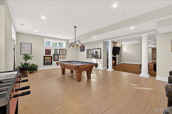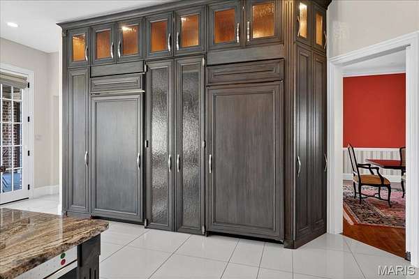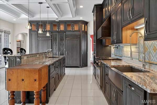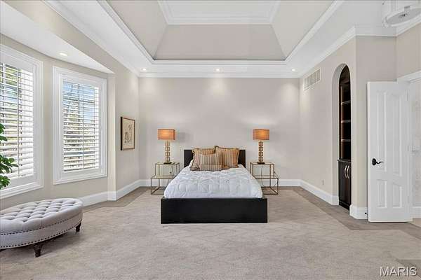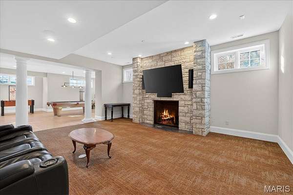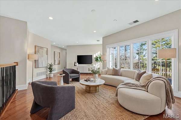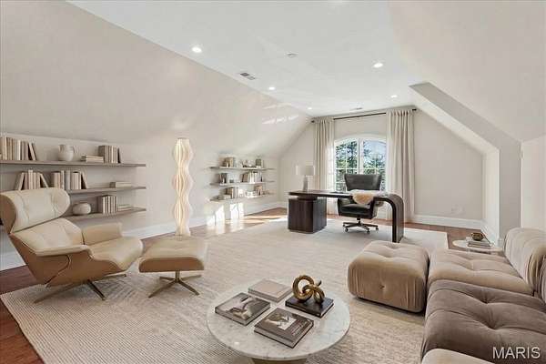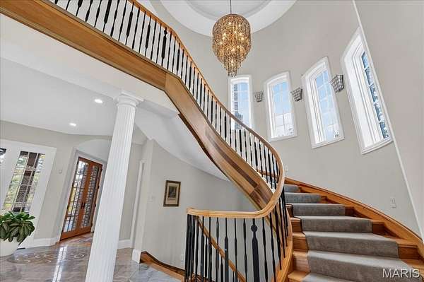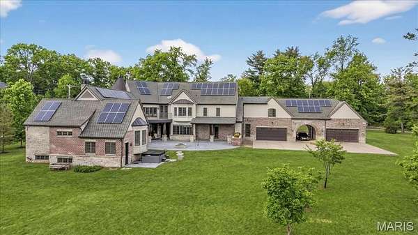 If expansive space and sustainable living are at the top of your list, this extraordinary estate delivers. Offering over 9,300 square feet of living space on 3 acres in the heart of Ladue, the home is thoughtfully designed for both everyday living and multi-generational needs, including an integrated in-law suite. Energy efficiency takes center stage in this exceptional EPA Indoor AirPlus Qualified Home, thoughtfully engineered for both sustainability and superior indoor air quality. Solar panels harness renewable energy to meaningfully offset utility expenses, while an advanced geothermal heating and cooling system delivers remarkably efficient, even-temperature comfort year-round. Complementing these systems is a water filtration system that supports a cleaner, healthier living environment. Together, these high-performance upgrades create a home that prioritizes sustainability, cost savings, and elevated everyday comfort — a rare combination of environmental responsibility and refined living. A grand entry hall welcomes you with a dramatic two-story curved staircase. The wood-paneled great room serves as the heart of the home, showcasing soaring ceilings, a fireplace, and French doors opening to the patio. The formal dining room easily accommodates large gatherings, while the expansive kitchen impresses with abundant cabinetry, a center island, oversized walk-in pantry, and a Butler’s pantry/prep kitchen. The main-level primary suite features a generous walk-in closet and a spacious bath with separate vanities and dual water closets. Positioned on the opposite wing of the home, the main-level in-law suite is thoughtfully designed with its own private kitchen, ensuite bath, walk-in closet, and dedicated thermostat. Handicap-accessible and exceptionally well-equipped, it provides comfortable, independent accommodations ideal for extended family or long-term guests. The second floor features three ensuite bedrooms and a generous bonus room that can serve as a sixth bedroom. The finished walk-up lower level is designed for entertaining, complete with a wine cellar and tasting room, game room, recreation room, two bathrooms, and additional kitchen and laundry. A four-car garage provides ample space for vehicles and storage, completing this exceptional Ladue property.