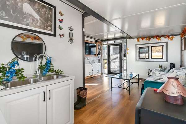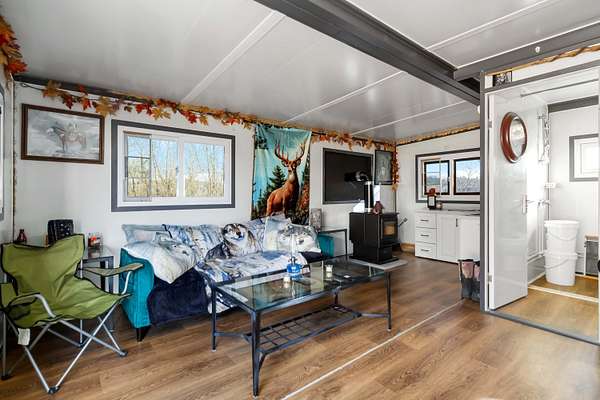 Tucked away on a peaceful, secluded ridge overlooking the breathtaking waters of Lake Cumberland, this newly set container home offers a rare opportunity to own a truly special off-grid retreat in Burnside, Kentucky. Designed for those who value privacy, nature, and simplicity without sacrificing comfort, this property delivers an unforgettable setting with panoramic lake views that stretch for miles. The thoughtfully designed 1-bedroom, 1-bathroom home features tasteful details throughout and an open, airy layout that maximizes both space and scenery. The spacious kitchen and living area flow seamlessly together, creating a warm and inviting environment perfect for relaxing, entertaining, or simply soaking in the surrounding natural beauty. Large windows frame the lake and woodland views, allowing natural light to pour in and bringing the outdoors inside. Built for off-grid living, the home is plumbed to operate from a water tank and intentionally designed with no electric, making it ideal for those seeking a sustainable lifestyle or a private escape from the noise and pace of everyday life. Whether you envision solar power, generator use, or leaving it just as it is, the property offers flexibility to suit your vision. Set on 2.44 acres of coveted wooded land, this property provides exceptional privacy while still being close to the recreation and charm of Lake Cumberland. The land itself is a standout feature, boasting beautiful rock gardens and a serene pond area, creating natural spaces for reflection, relaxation, or entertaining guests. The setting is quiet, peaceful, and surrounded by nature-perfect for morning coffee with the mist rising off the lake or evenings spent watching the sunset over the water. Adding even more value is a good-sized block garage, ideal for storage, a workshop, or housing lake and outdoor gear. With ample room to expand, the property offers endless potential-whether you choose to add additional structures, create outdoor living spaces, or simply preserve the land as your private nature sanctuary. This property is perfect for an Airbnb or short-term rental opportunity, offering guests a one-of-a-kind off-grid experience with unbeatable views of Lake Cumberland. It is equally ideal for someone looking to live close to nature, unplug, and enjoy the peace and beauty of a secluded lakeside ridge. Opportunities like this are rare-a private, off-grid retreat with stunning lake views, acreage, and income potential in one of Kentucky's most sought-after lake destinations. This is more than a property; it's a lifestyle waiting to be embraced.