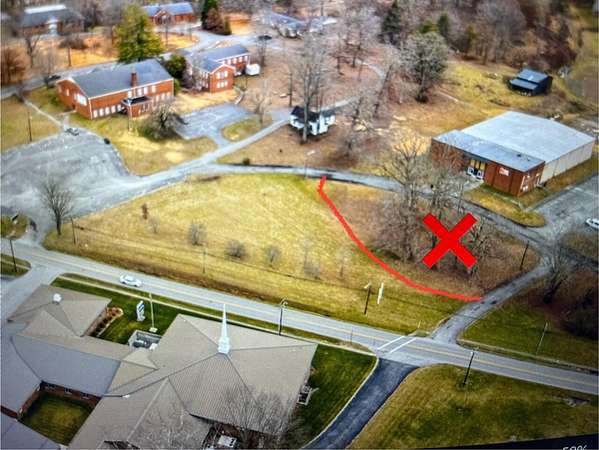 On West 5th St, across from Community Christian Church. Road front vacant lot in front of New Life Worship Center.