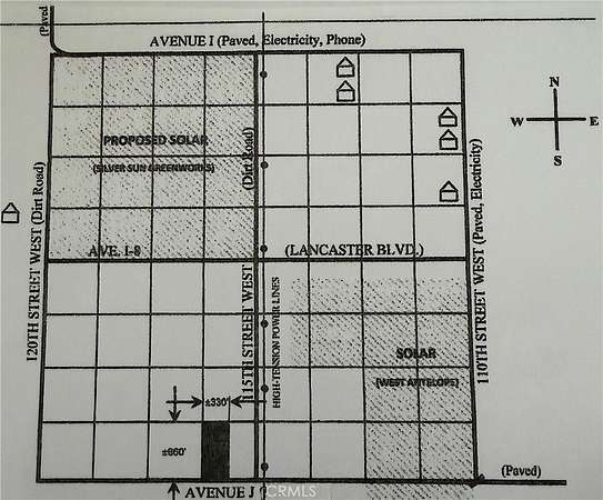 Est $402/moGreat opportunity to own approximately 5 acres of flat, usable land in the growing area of Lancaster. Located near Ave J and 116th St W, this parcel offers convenient access via nearby paved roads with power infrastructure in the vicinity. Ideal for investment, future development, or land banking. Surrounded by open space and close to existing solar developments, this property offers strong potential in a rapidly expanding area. Buyers to verify zoning, utilities, and land use with the county.