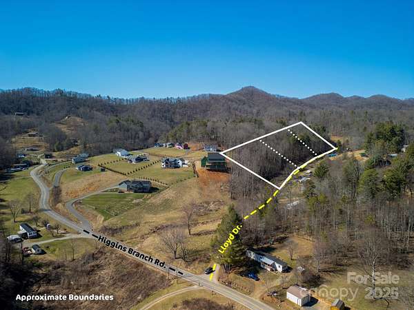 From Asheville, take I26 towards TN. Take exit 9 onto US 19. Immediately turn left onto Alt US 23. Turn left onto Higgins Branch Road. Turn Right onto Lloyd Drive. The property is on the left wooded hillside.