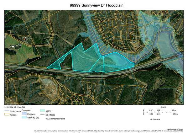 From US-74, exit on Pea Ridge Rd. Turn away from the TIEC, and turn right on Abrams Moore Rd. Turn right on Sunny View Rd, and this road enters the acreage. The entrance is gated, no showings without appointment.
