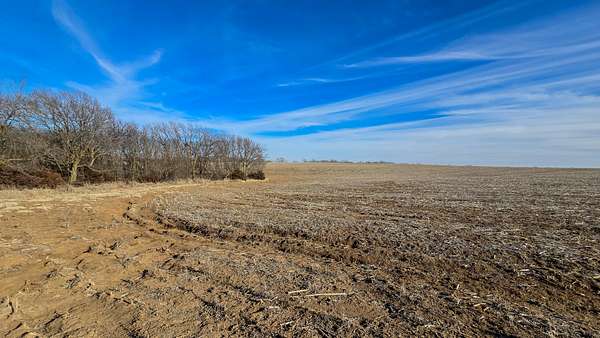 The north and east boundaries further enhance the farm's wildlife appeal. Both fence lines are lined with established stands of elm, ash, and Osage orange trees, forming strong edge habitat and predictable travel corridors. Fingers of timber extend from these borders toward the center of the property, creating pinch points and natural crossing areas where wildlife can move between feeding and bedding areas while remaining concealed. These interior extensions offer strategic stand locations and multiple setup options depending on wind direction.