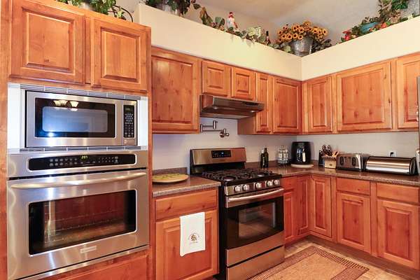 This amazing custom-built home is nestled on a sprawling 7.63-acre property, surrounded by lush pine trees and set against the backdrop of picturesque hillsides, offering breathtaking views. The residence is designed to blend seamlessly with its natural surroundings, offering privacy and tranquility. Inside the spacious layout is both elegant and functional, with meticulously crafted finishes that reflect the home's custom built construction. For car enthusiasts or those needing extra space for storage, the home includes a 3-car finished garage, providing ample room for vehicles and additional storage. Adjacent to the garage is a finished workshop, perfect for those who enjoy DIY projects or need space for crafts and hobbies. Nestled in between is an RV parking area The property itself is a nature lover's paradise, offering a private retreat with ample outdoor space to enjoy the serene beauty of the landscape. Whether you're relaxing on the porch, the outdoor patio or exploring the acres of land, this home is truly one not to miss.
