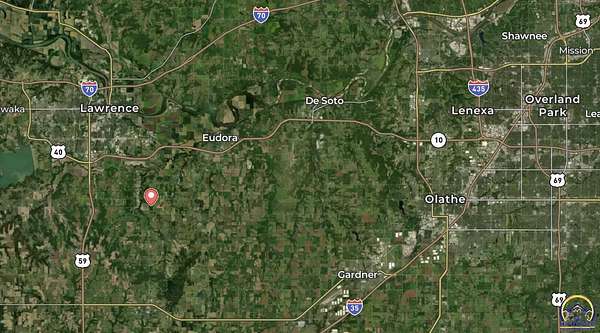 Discover 23.15 acres just outside Lawrence-an ideal setting for your future build with blacktop access, scenic views, and exceptional privacy. The location is hard to beat: only 10 minutes to Lawrence, 15 minutes to the Panasonic Battery Plant, and 25 minutes to the KC Metro. Enjoy a rural feel with quick access to major destinations. The property is build-ready with a rocked driveway, completed build pad, and a successful septic percolation test with the county. A water meter is included in the sale-offering significant value and convenience for your future plans. Don't miss this premium Douglas County tract. Contact us today to schedule a showing.