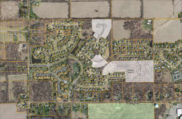 Gethings to Huntington Hills Blvd north, east to Abbington Circle and north east to Barrington Circle