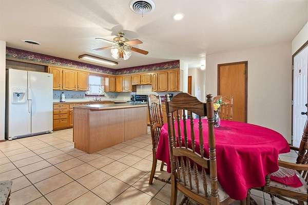 Escape to wide-open country living on over 9 acres at 1116 FM 2404! Conveniently located north of Abilene, this 4-bedroom, 2-bath single-story home offers 2,486 sq ft of comfortable living space with room to spread out. Built in 1967 and full of potential, the home features a spacious living area with a wood-burning brick corner fireplace accented with two wall lamps. The open kitchen and breakfast area offers ceramic tile flooring, an island, ample cabinetry for storage, and a pantry. An additional bonus room is adjacent to the dining room. Split bedroom layout. Outside, you’ll love the half circle drive, attached carport, fenced areas, and open pasture—perfect for ag projects. With mature trees, brush, and peaceful rural surroundings just minutes from town, this property delivers the ideal blend of projects for a home and structure remodeler or do it yourself buyer.