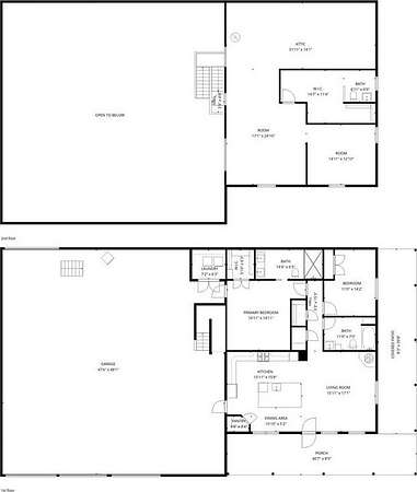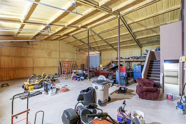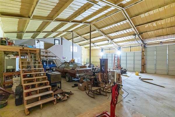 Beautiful 2-bedroom, 2-bath barndominium-style home on 10 acres, just minutes from town. Built in 2020, this thoughtfully designed property blends modern comfort with country functionality. The home was site-built and wrapped in metal, featuring 2x6 exterior walls, a whole-house filtration system, and central heat and air complemented by a cozy wood-burning stove in the living room and gorgeous quartz countertops in the kitchen. The main living area offers 1,336 sq ft, while the attached 2,304 sq ft shop-garage provides incredible versatility with two 10' electric doors and two 12' doors--perfect for equipment, hobbies, or additional workspace. An additional upstairs build-out includes a room with a half bath (not included in the listed square footage), offering flexible use for guests, office, or storage. The land is fully set up with quad string fencing, a gated entrance, a 20x20 RV cover, an open-face barn, and a 40' storage container. The property also includes three electric meters, giving you options for future expansion or separate utility needs. All major kitchen appliances plus the washer and dryer convey, making this home truly move in ready. A rare opportunity to own a well built, amenity rich home on 10 acres with excellent access to town--ideal for those seeking space, functionality, and modern comfort in one complete package. (Solar panels will be paid off at closing and convey. Per seller, electric bill averages $100 per month.)