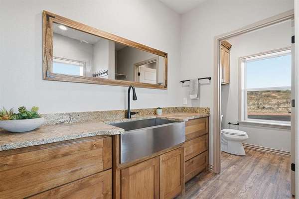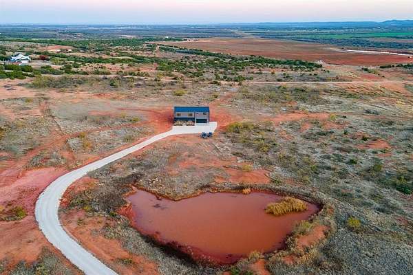 Immerse yourself in luxury with this stunning Barndominium, with a blend of sophistication and natural beauty, located just SW of the growing City of Abilene, Texas. Nestled on nearly 55-acres, this expansive estate has 4 generously sized bedrooms, 3 full bathrooms, and 2 stories. It offers an unparalleled combination of modern elegance and serene countryside living. Primary and 2 guest bedrooms located upstairs as well as a 2nd living room. Downstairs bedroom includes custom build in dresser.