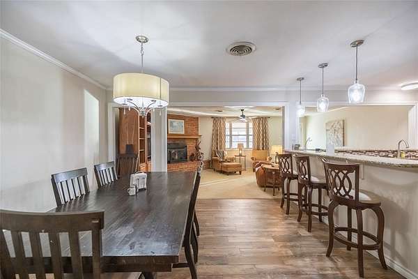 Upon entering, you are greeted by a bright and welcoming living area, featuring an impressive fireplace that adds warmth and charm to the home. This well-maintained property extends a warm invitation to its generously sized large kitchen, a culinary haven with ample counter space ideal for cooking enthusiasts or casual family meals. The seamless flow from the kitchen to the dining area makes entertaining a breeze.