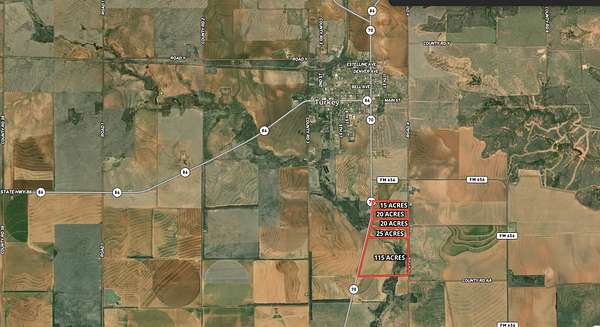 Located just south of Turkey, Texas, these newly offered tracts present a rare opportunity to own small acreage with highway frontage - something seldom available in this area. With approximate sizes ranging from 15 acres up to 115 acres, these tracts offer the perfect setting for those seeking to build their dream home in the heart of the Texas Panhandle. -Frontage: Each tract offers Highway 70 frontage on the west side and county road frontage on the east side -Water: A city water line runs along both Highway 70 and the county road, offering the potential for city water taps (availability to be confirmed with the City of Turkey on a tract-by-tract basis). Restrictions: Light deed restrictions will be placed to maintain the beauty and integrity of the area - prohibiting junkyards, salvage operations, or old/dilapidated mobile homes. The seller's goal is to create a clean, country setting ideal for those looking to establish their forever home