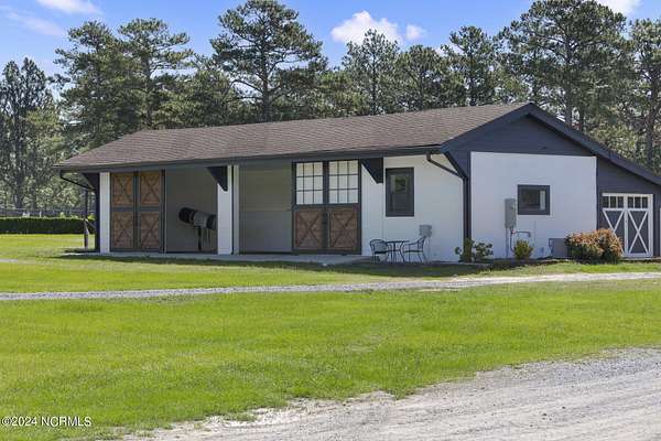 Turn-key +/-35 acre horse farm ideally located just minutes from the Carolina Horse Park, the renowned horse country of Southern Pines and the Pinehurst Harness Track. Tryon an easy 3.5-hour drive away. This exceptional property offers premier equestrian amenities across beautiful, usable acreage. The rolling land is thoughtfully laid out with multiple well-maintained pastures, providing excellent turnout and flexibility for a variety of equestrian disciplines. A scenic pond adds to the natural beauty of the farm, while the open topography and expansive layout create outstanding potential for cross-country schooling, conditioning, or further development. The layout and acreage make this a highly functional and attractive horse property. The equestrian facilities are well equipped for training, boarding, or breeding. The main barn features 30+ stalls, tack rooms, offices, hay storage, and several flexible-use spaces. There is a separate, state-of-the-art breeding barn than provides additional capacity and versatility. The oversized outdoor arena accommodates both show jumping and dressage, and two existing jump courses are already in place. There is also a Kraft 6-horse walker with covered round pen. This is a rare opportunity to acquire a fully equipped equestrian facility with exceptional land, extensive infrastructure, and room to grow in one of North Carolina's most desirable horse regions.