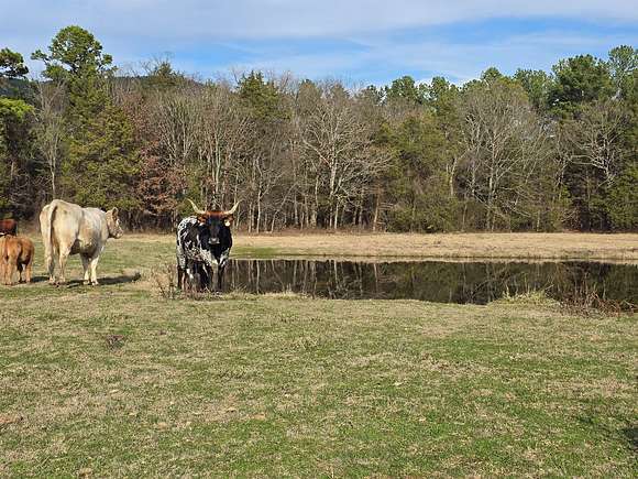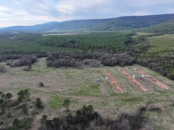 Land: There are 80 acres (m/l) of level to gently sloping land that lies near the foot of Poteau Mountain. The property has frontage to the 1.8 million acre Ouachita National Forest on the East property boundary and adjoins timber company land on the North and West property boundaries. Roughly 70% of the land is in improved pasture land and currently used to run cattle. The balance of the property is covered with mature timber that is native to this area. NOTE: Some ariel photography show 3 broiler houses located on the property. These structures have been removed.